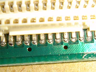 液晶パネルに接続される基板上のコネクタ 明らかにヒビが入っています。 次の写真はリフロー後 判りやすくていいですね! |